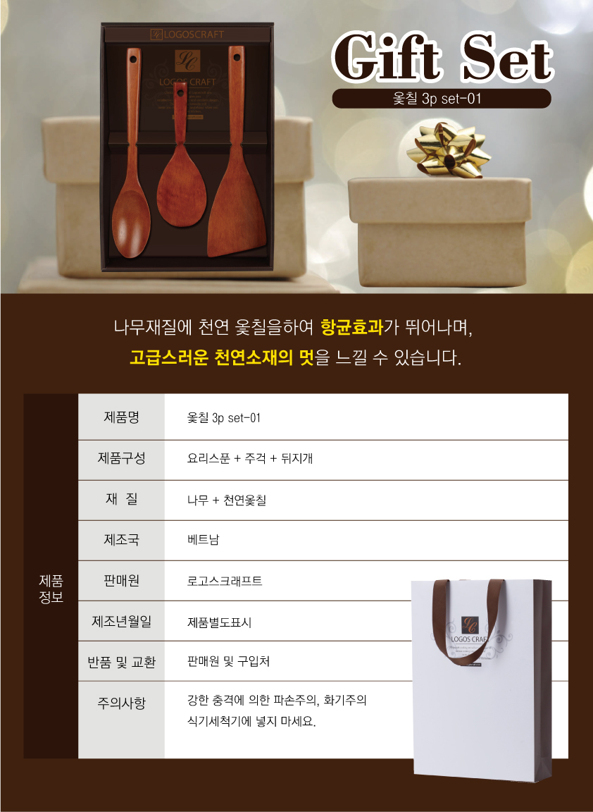 요리스푼+주걱+뒤지개 구성으로 나무재질에 천연 옻칠을 하여 항균효과가 뛰어나며 고급스러운 천연소재의 멋을 느낄수 있습니다