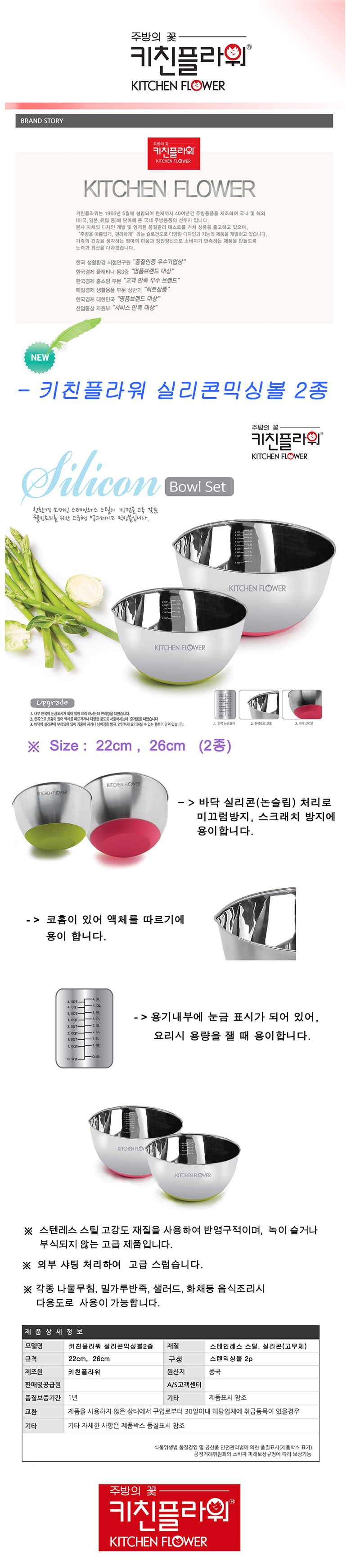 키친플라워 스텐 실리콘믹싱볼2종