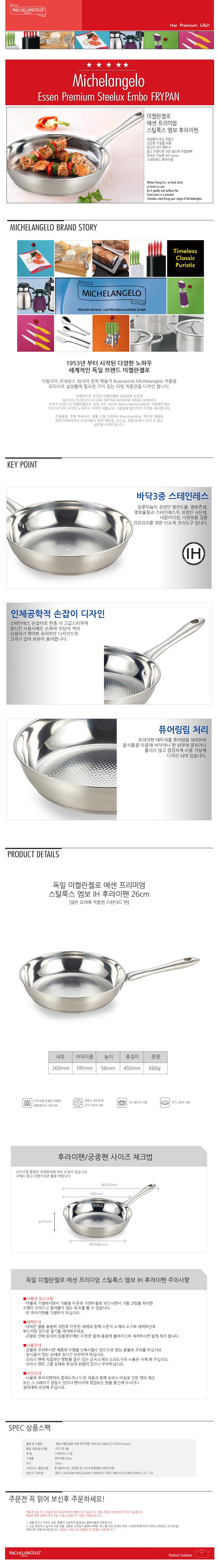 독일 미켈란젤로 에센 26cm 엠보 후라이팬