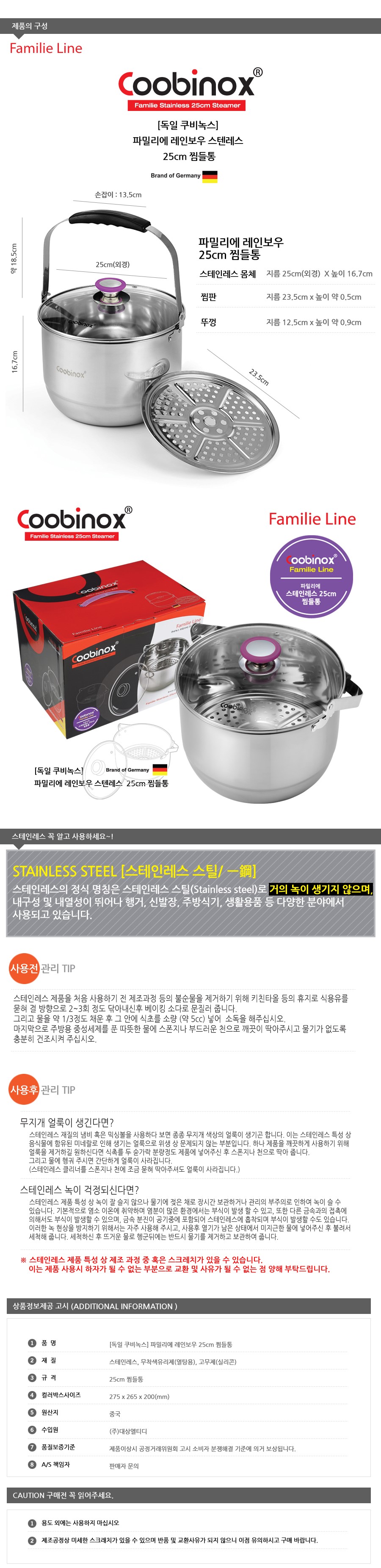 쿠비녹스 파밀리에 레인보우 25cm 찜들통