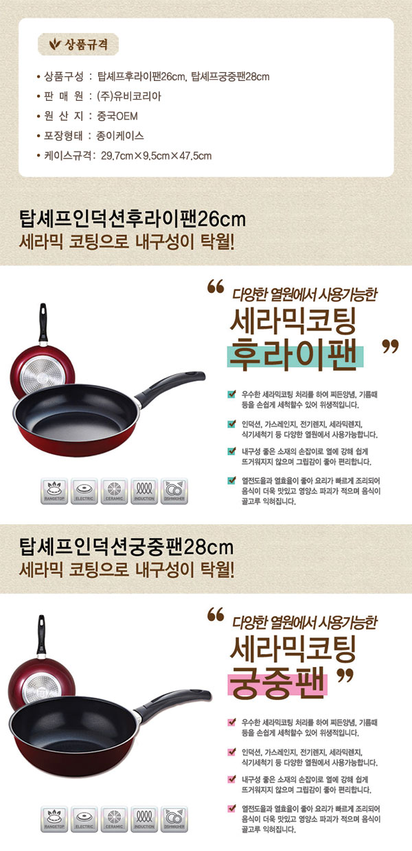 탑셰프 인덕션 겸용 후라이팬26 궁중팬28(2종)
