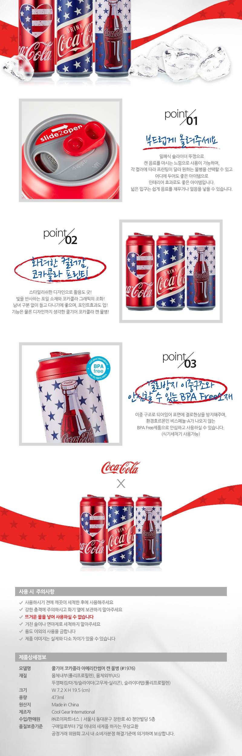 편리함은 물론 디자인까지 생각한 똑똑한 쿨기어 코카콜라 아메리칸썸머 캔 물병