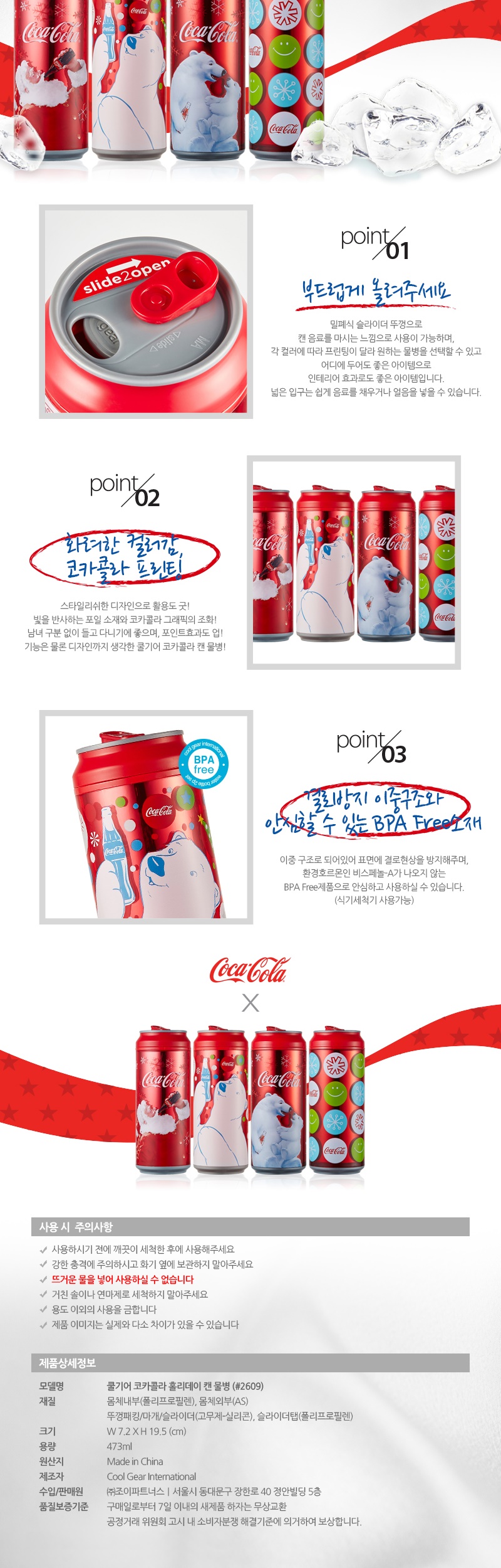 쿨기어 코카콜라 홀리데이 캔 물병 1P
