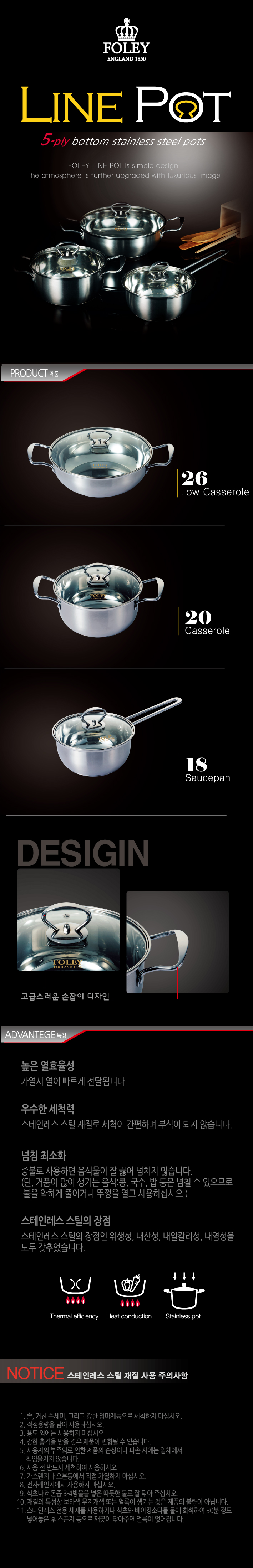 폴리 라인 냄비 3종(18편수,20양수,26전골)