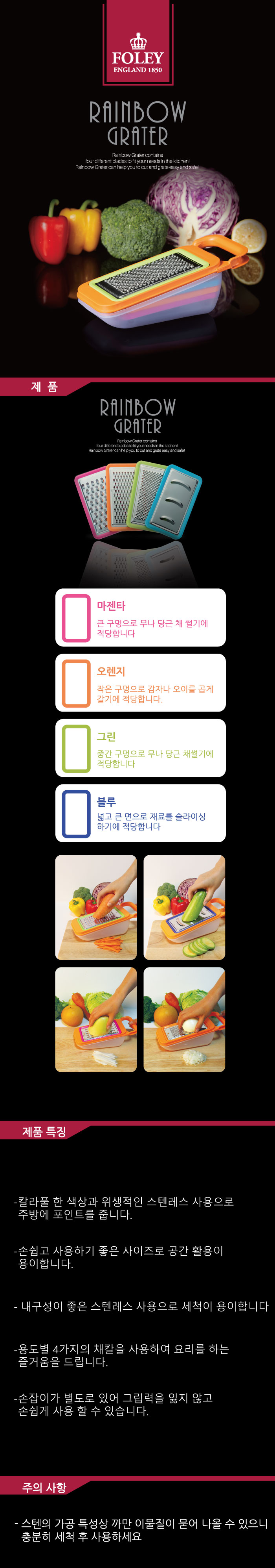 용도별 4가지의 채칼을 사용하여 요리를 하는 즐거움을 드립니다