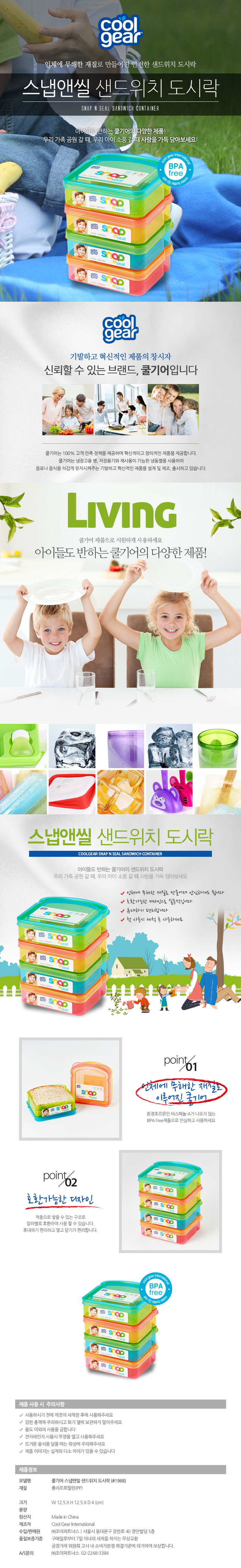 쿨기어 스냅앤씰 샌드위치 도시락 4P세트