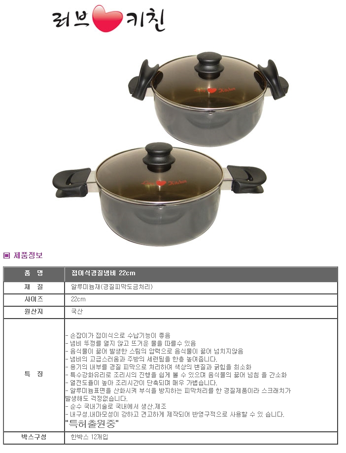 손잡이가 접이식으로 수납기능이 좋음 냄비 뚜껑을 열지 않고 뜨거운 물을 따를수 있습니다