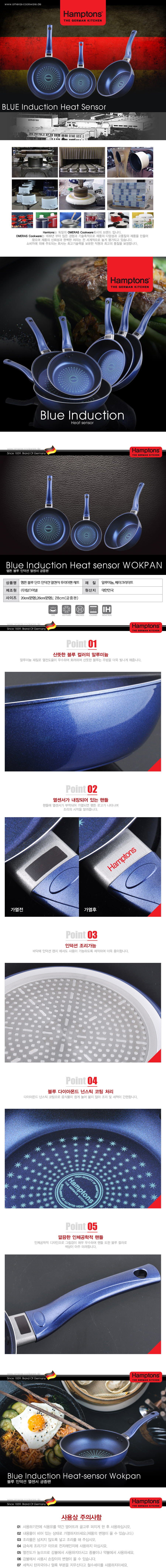 [Hamptons]독일햄튼 단조 다이아몬드 후라이팬3종 (20cm+26cm+28cm웍)