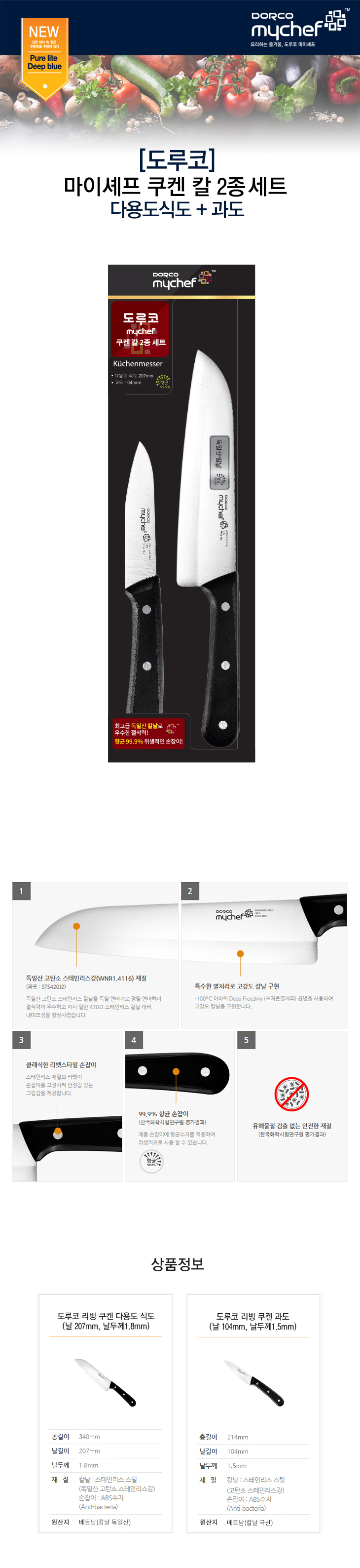최고급 독일살 칼날로 우수한 절삭력! 유해물질 없는 안전한 제품,항균99.9%위생적인 손잡이