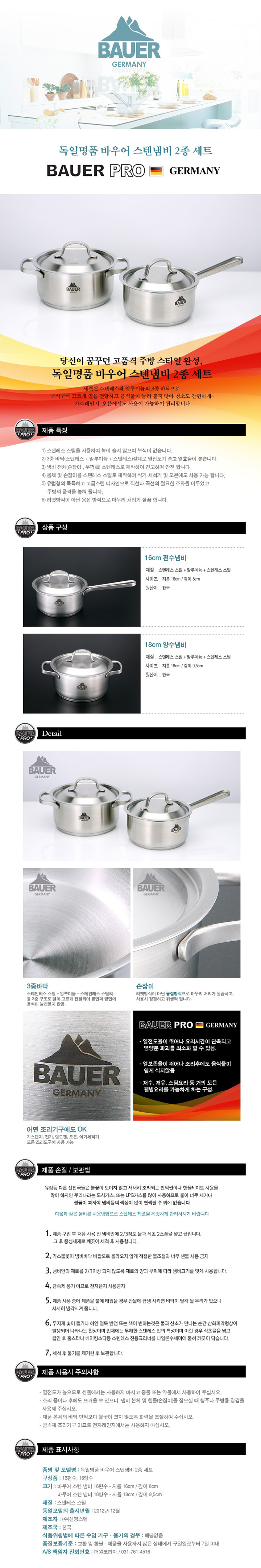 [BAUER PRO GERMANY] 독일 바우어 프로 스텐냄비 2종 세트 (16편수, 18양수)