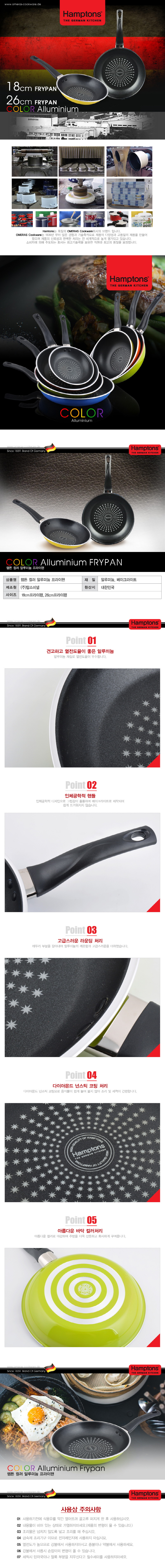 [Hamptons]독일 햄튼 칼라 다이아몬 드 후라이팬 2종(18cm+26cm)