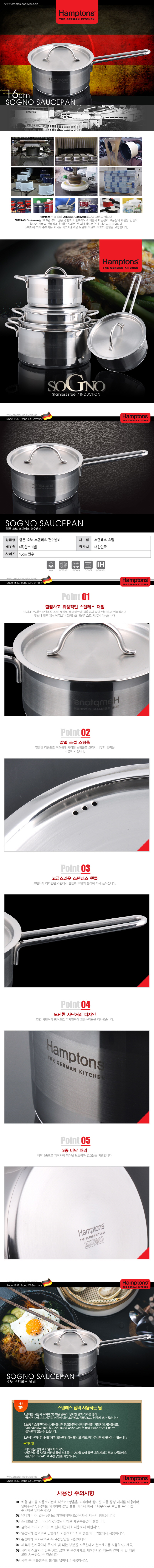 [Hamptons]독일 햄튼 소노 인덕션 편수냄비 16cm