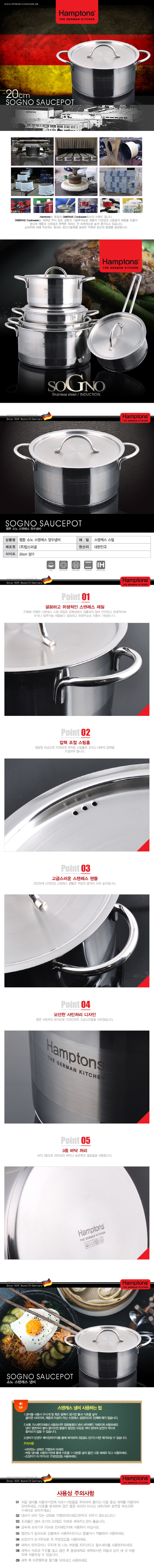 [Hamptons]독일 햄튼 소노 인덕션 양수냄비 20cm