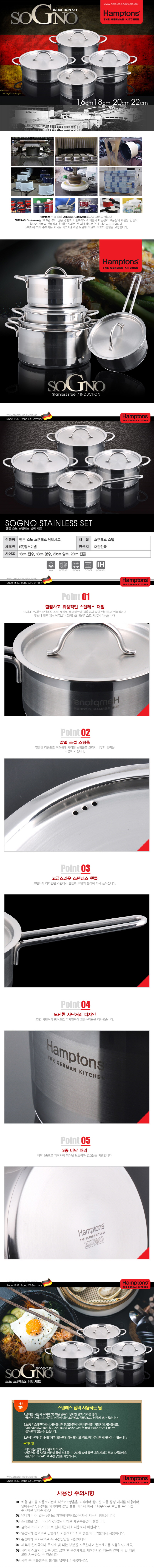 [Hamptons]독일 햄튼 소노 인덕션 4종세트(편수16cm+양수18cm+양수20cm+전골22cm)