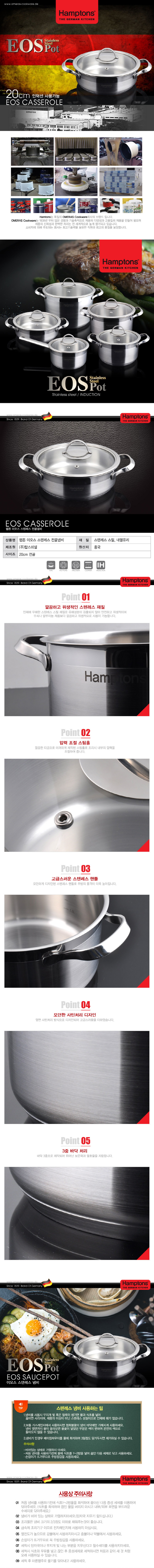 [Hamptons]독일 햄튼 EOS 인덕션 3중 바닥 전골냄비 20cm