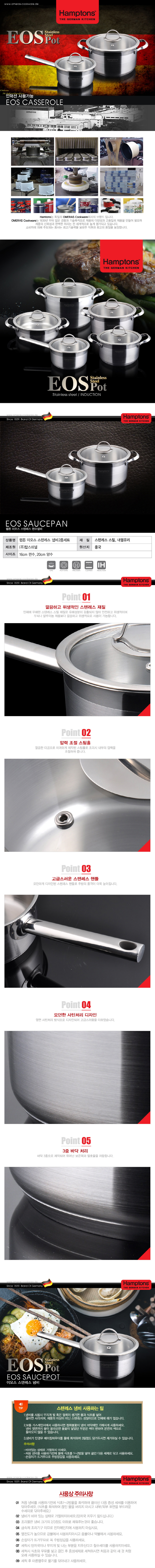 [Hamptons]독일 햄튼 EOS 인덕션 3중 바닥 냄비2종세트(편수16cm+양수 20cm)