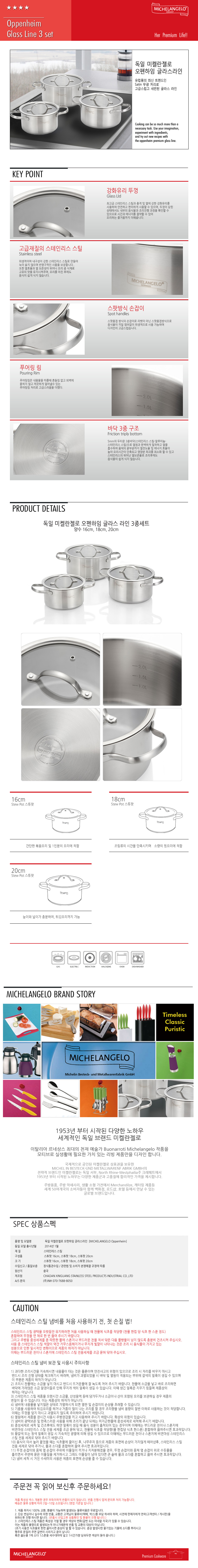 [미켈란젤로]오펜하임 GL스텐냄비 3종 (양수16cm+18cm+20cm)