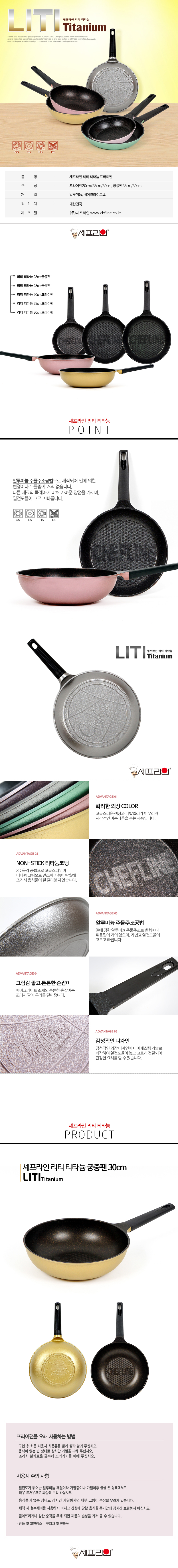 [셰프라인] 리빙앤쿡 티타늄 궁중팬 30cm (골드)