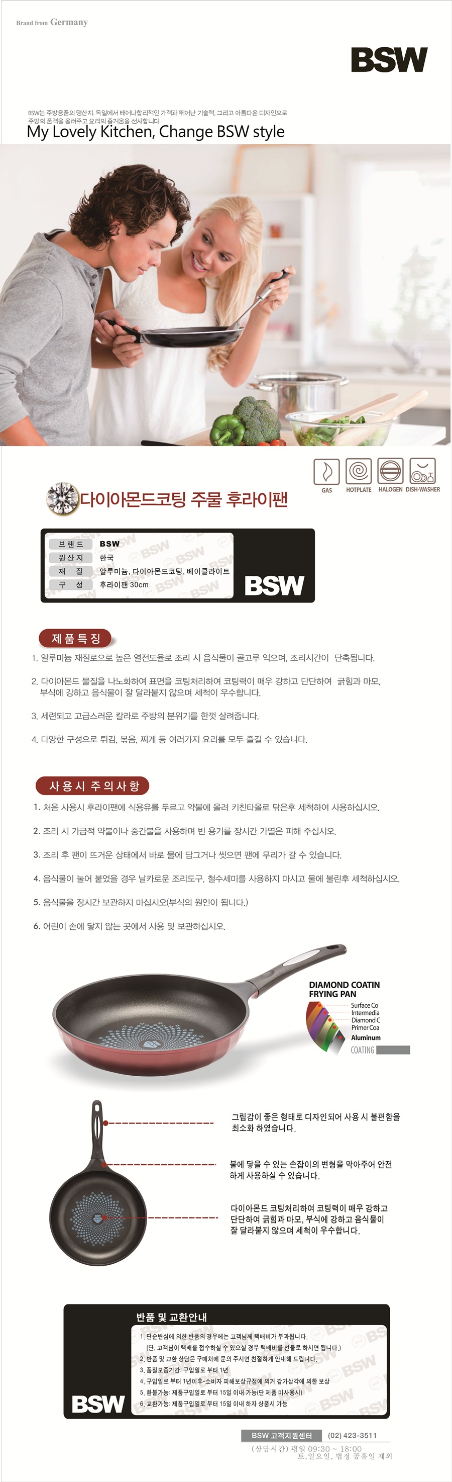 [BSW] 다이아몬드 주물 후라이팬 30cm(와인)
