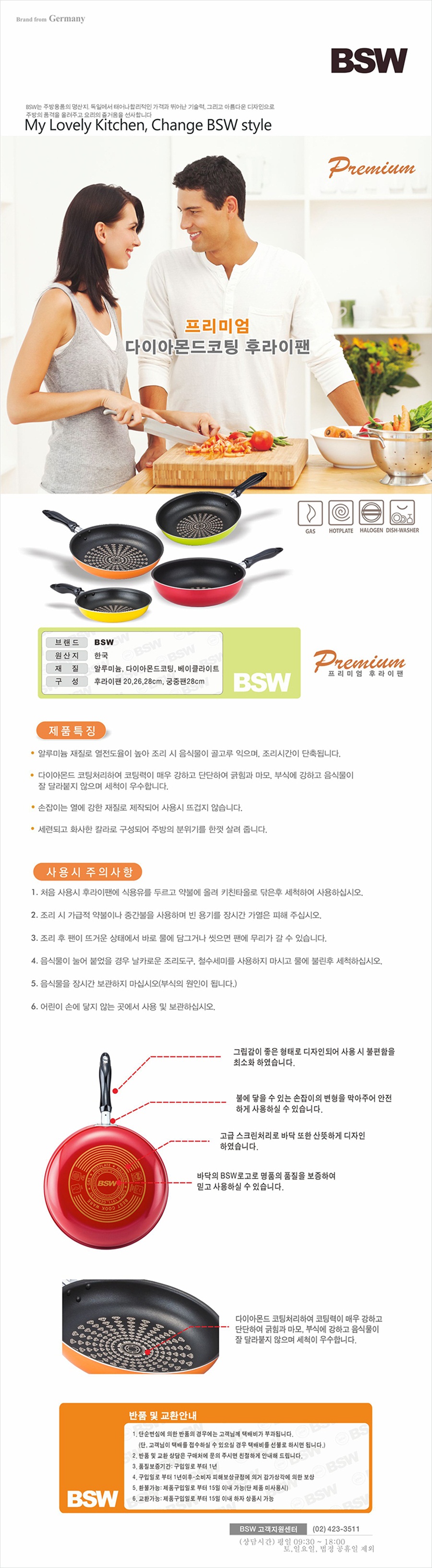 [BSW] 프리미엄 다이아몬드코팅 후라이팬 4종세트(후20,26,28,궁중28)