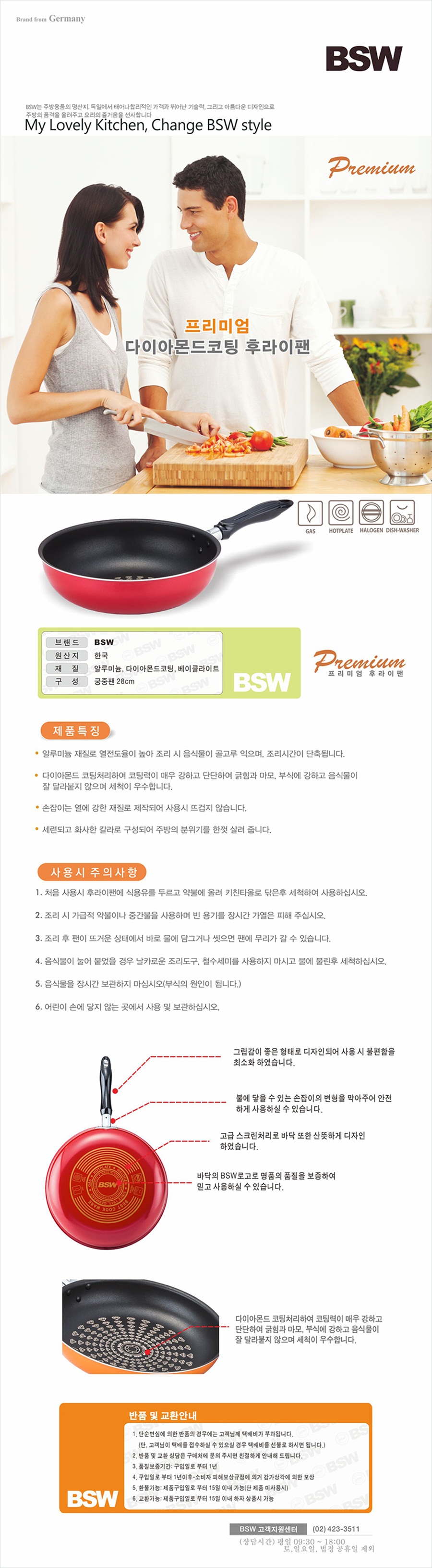 [BSW] 프리미엄 다이아몬드코팅 궁중팬 28cm