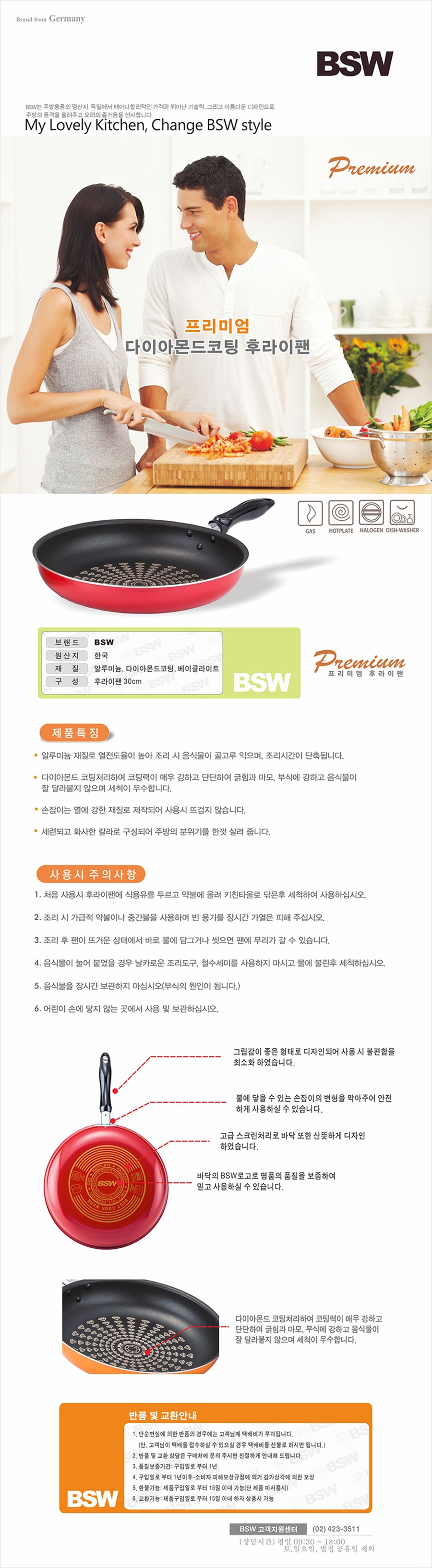 [BSW] 프리미엄 다이아몬드코팅 후라이팬 30cm