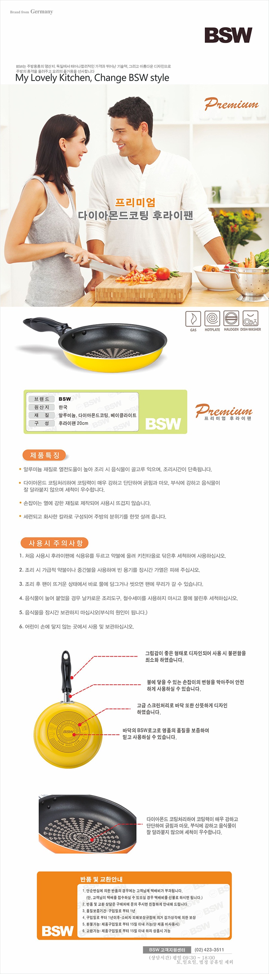 [BSW] 프리미엄 다이아몬드코팅 후라이팬 20cm