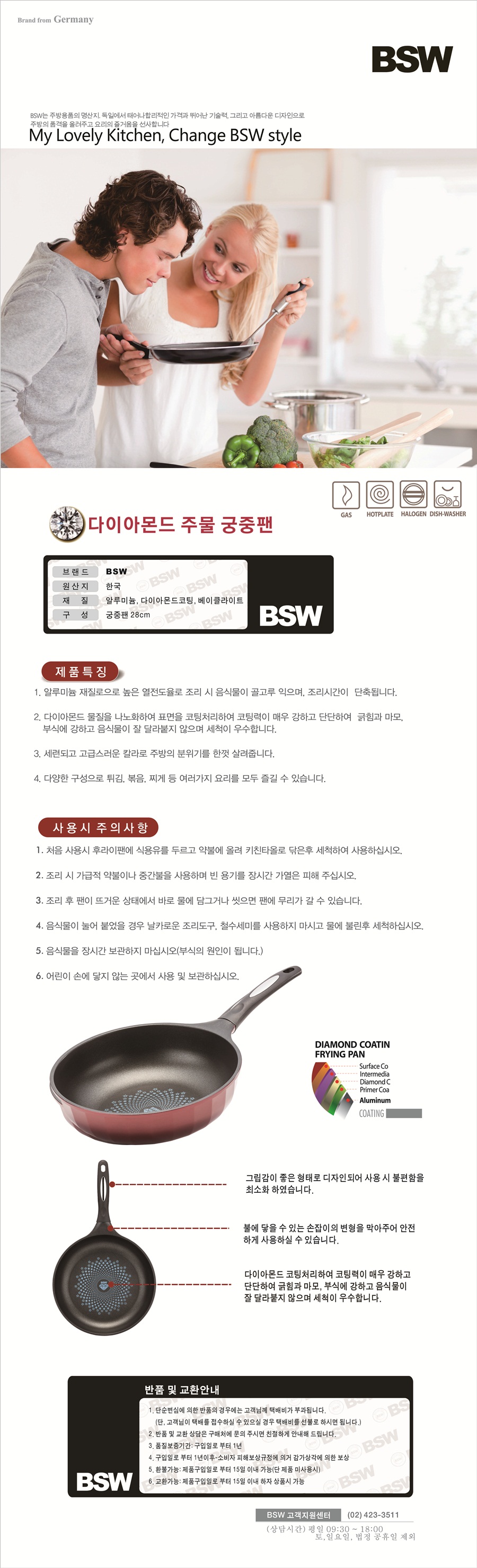 [BSW] 다이아몬드 주물 궁중팬 28cm(와인)