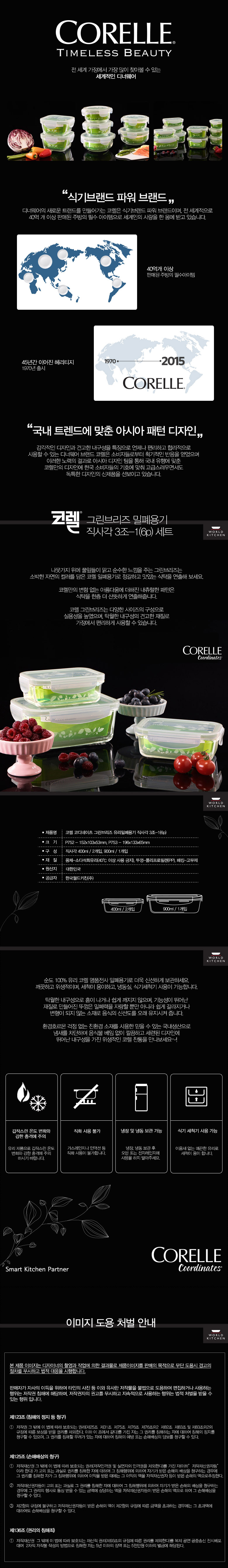 [코렐]브리즈 밀폐용기 직사각3조-1(6P) 400ml*2+900ml*1