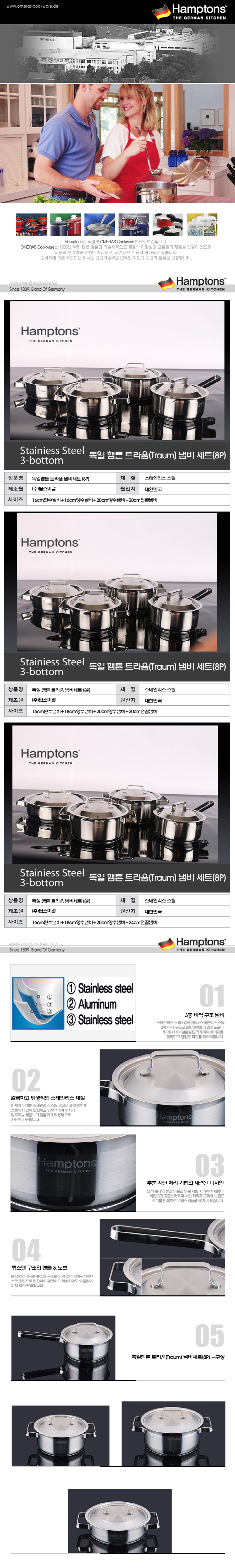 [Hamptons] 독일 햄튼 트라움 냄비 4종 8p 16cm 편수,16cm 양수,20cm 양수,20cm 전골 TRAUM-8P-A