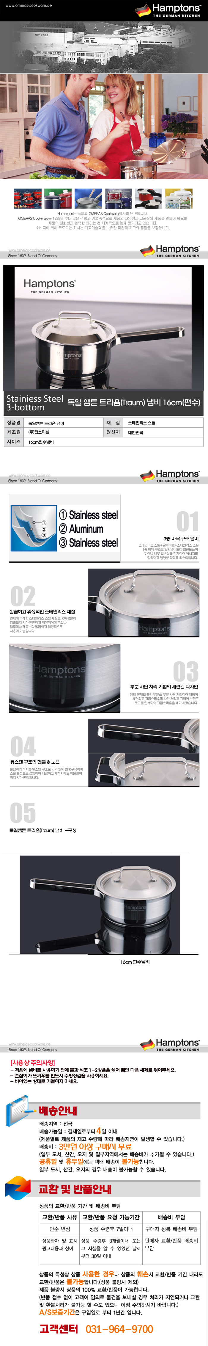 [Hamptons] 독일 햄튼 트라움 냄비 16cm 편수 TRAUM-16S