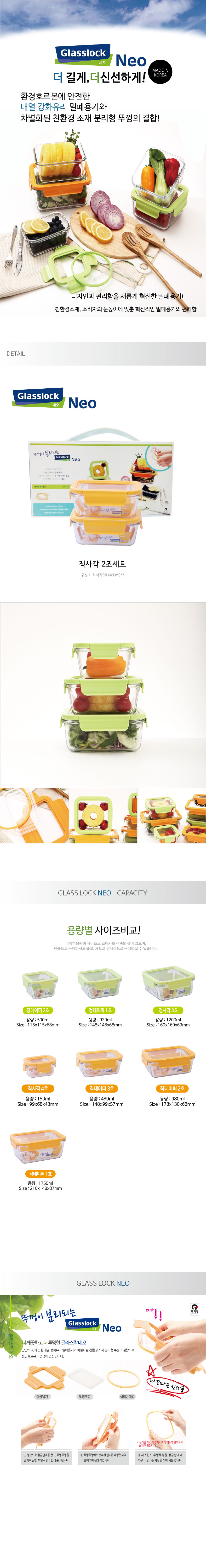 [Glasslock]글라스락 네오 직2조세트 (480ml*2조 4p)