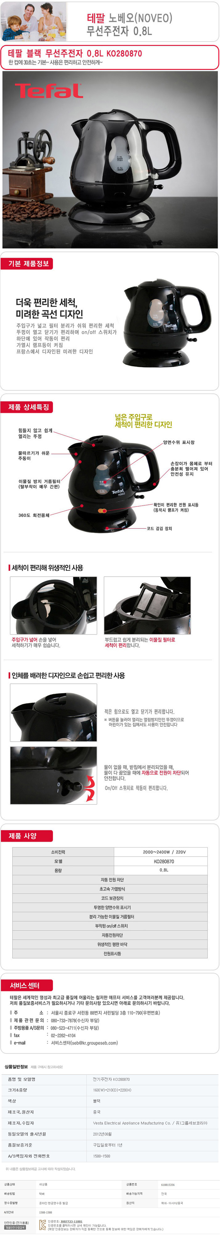 [Tefal] 테팔 노베오 무선주전자 0.8L KO-280870(검은색)