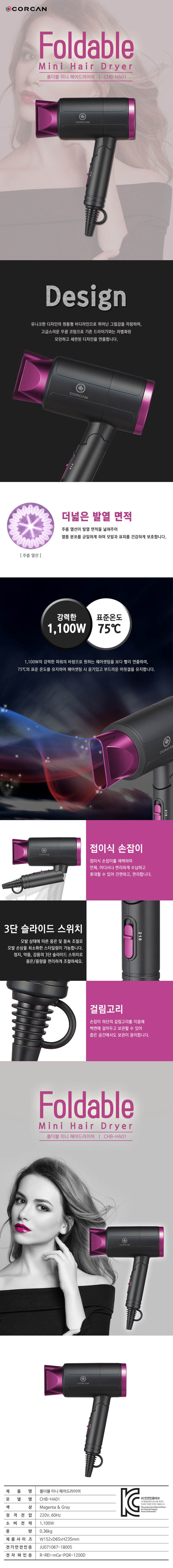 코칸 폴더블 미니 헤어드라이어 CHB-HA01