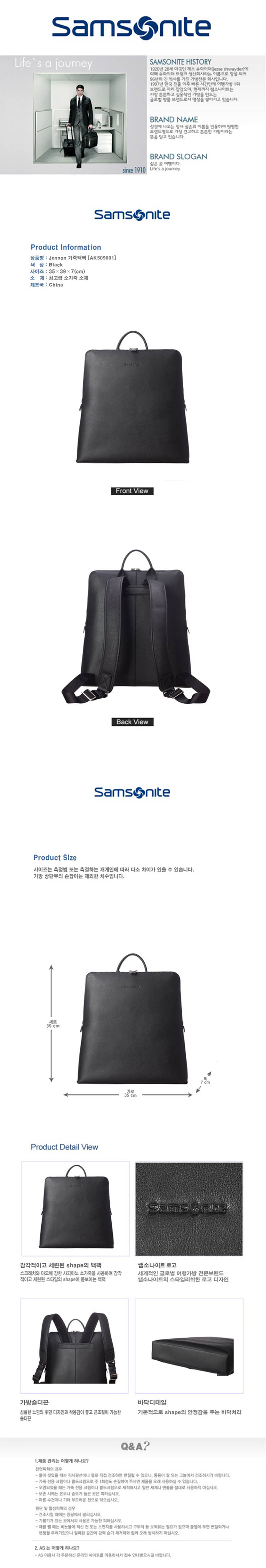 [쌤소나이트]JENNON 백팩 AK509001/블랙