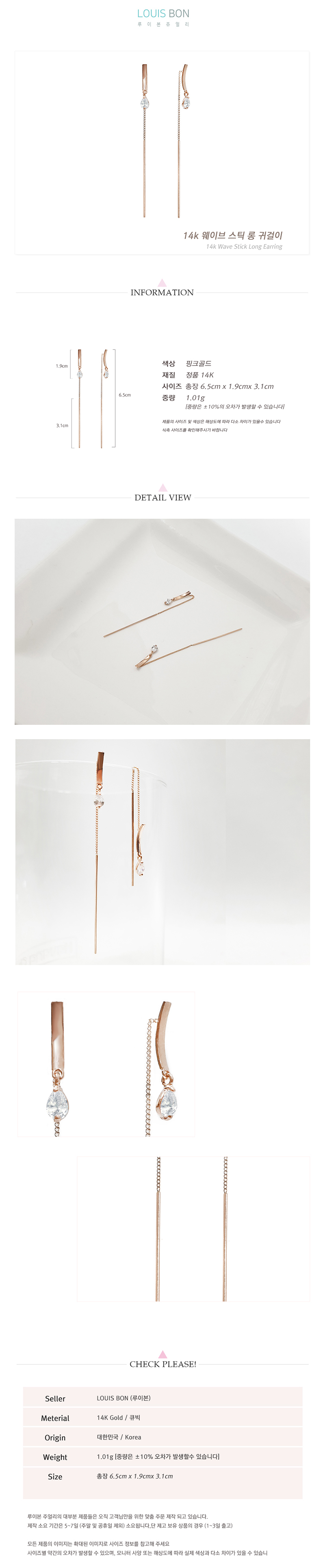 [루이본]14k 웨이브 스틱 롱 귀걸이 EKQ17089