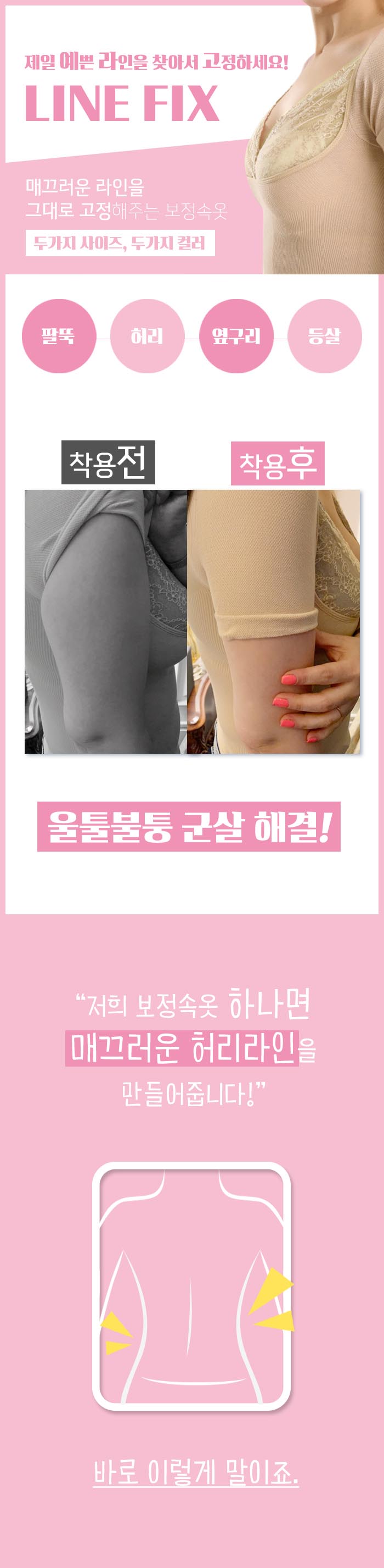 라인픽스 보정속옷 반팔 팔뚝살 바디쉐이퍼 올인원