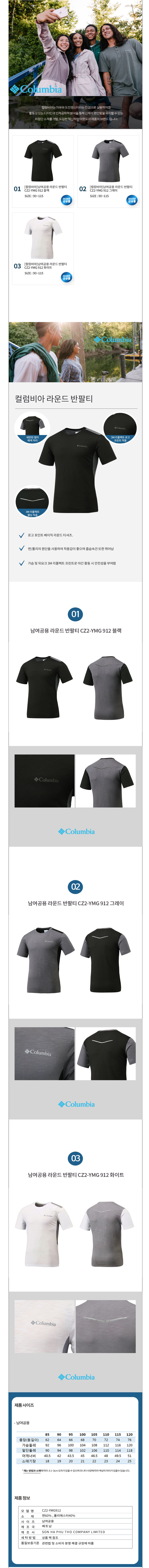 [컬럼비아]남여공용 라운드 반팔티 4종 택 1종 CZ2-YMG 912