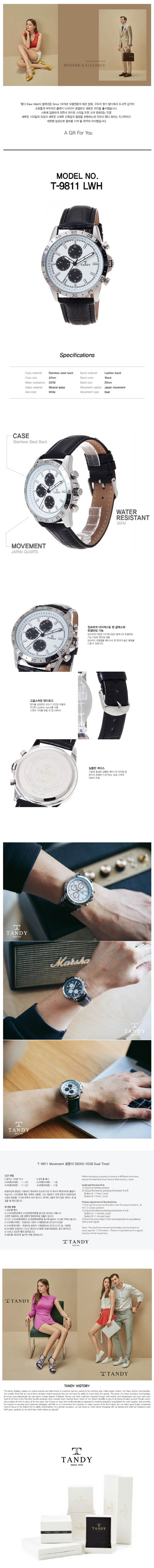 [탠디]멀티펑션 듀얼타임 남성가죽시계 T-9811LWH