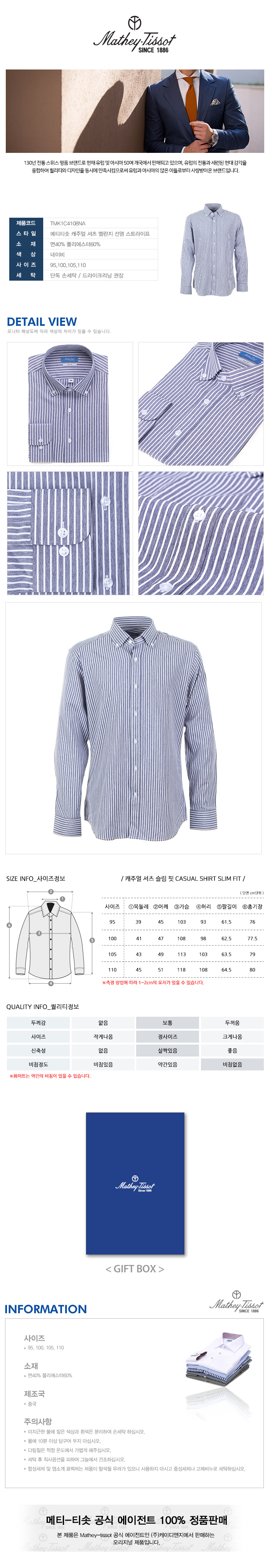 Mathey-Tissot 캐주얼 셔츠 멜란지 선염 스트라이프 네이비