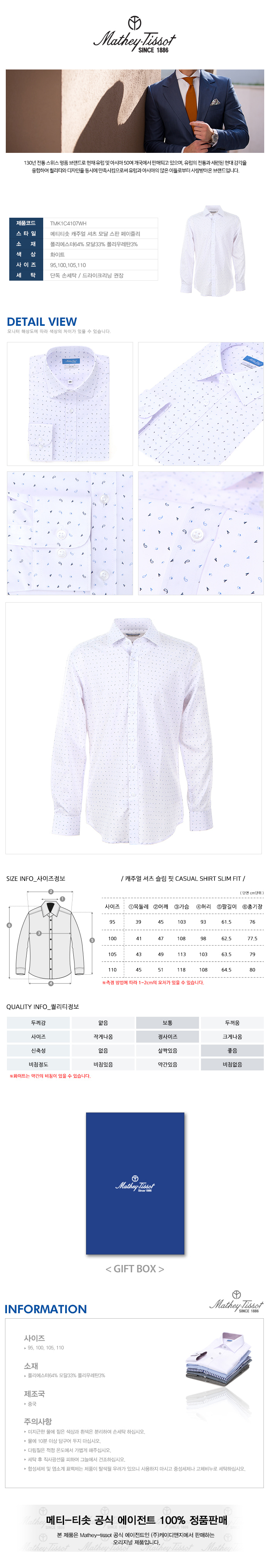 Mathey-Tissot 캐주얼 셔츠 모달 스판 페이즐리 화이트