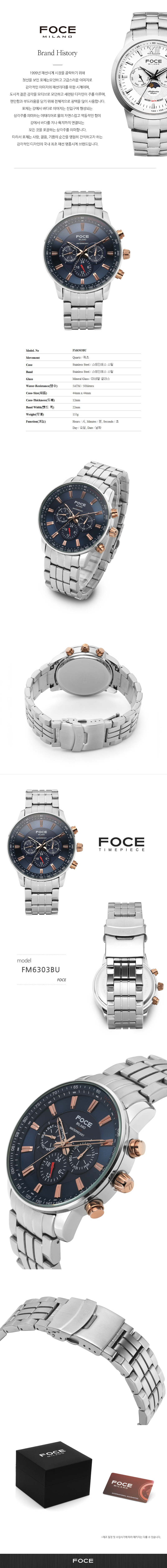 [FOCE]남성 메탈 손목시계 FM6303BU