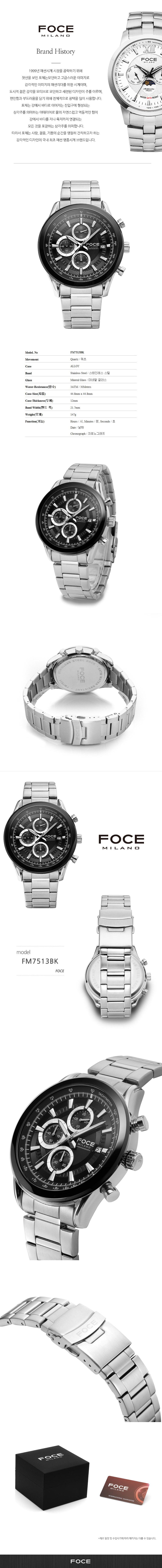 [FOCE]남성 메탈 손목시계 FM7513BK