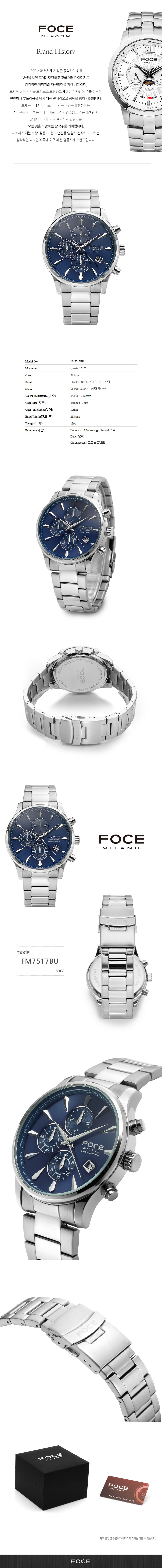 [FOCE]남성 메탈 손목시계 FM7517BU