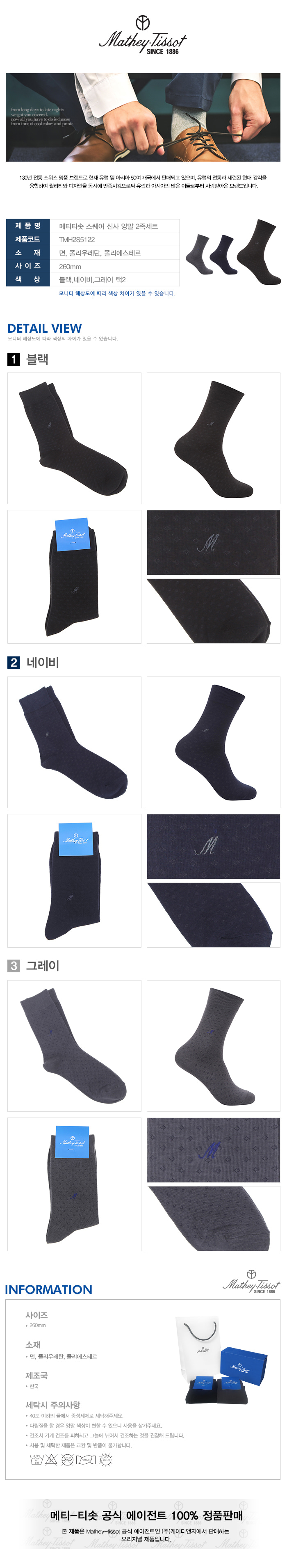 [Mathey-Tissot] 스퀘어 신사 양말 2족세트 블랙,네이비,그레이 택2