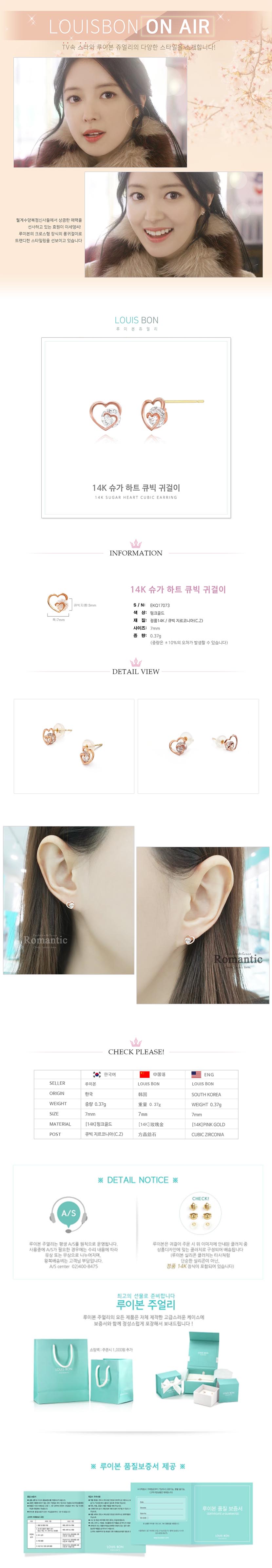 [루이본]14K 슈가 하트 큐빅 귀걸이 EKQ17073