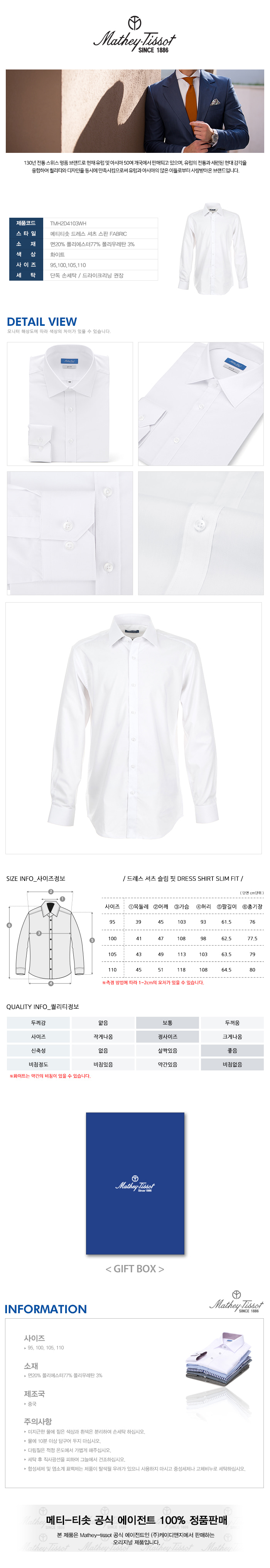 [Mathey-Tissot] 드레스 셔츠 스판 FABRIC 화이트 TMH2D4103WH