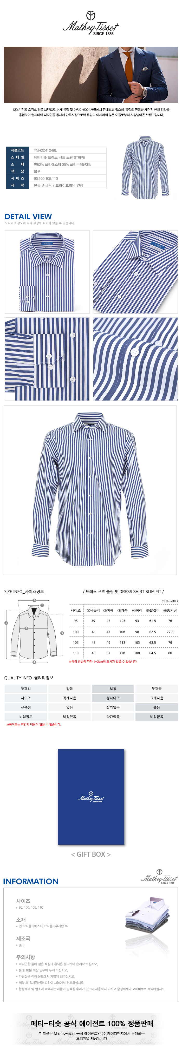 [Mathey-Tissot] 드레스 셔츠 스판 STRIPE 블루 TMH2D4104BL