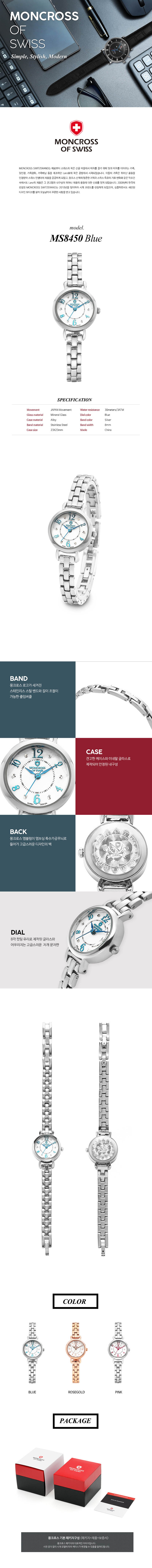몽크로스 MS8450 BL 멀티펑션 여성용 팔찌시계