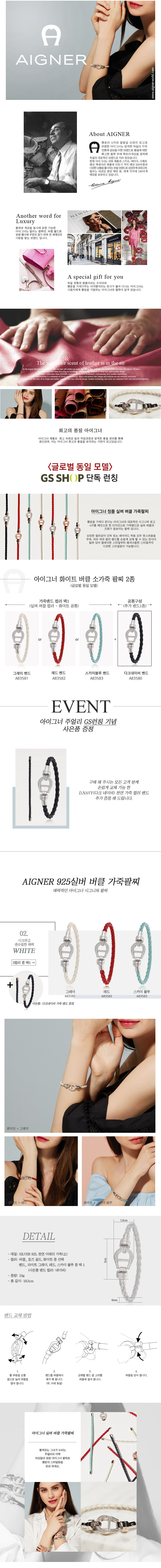 아이그너 화이트버클 가죽팔찌 2종(Silver925)/네이비밴드 추가증정/GS홈쇼핑정품